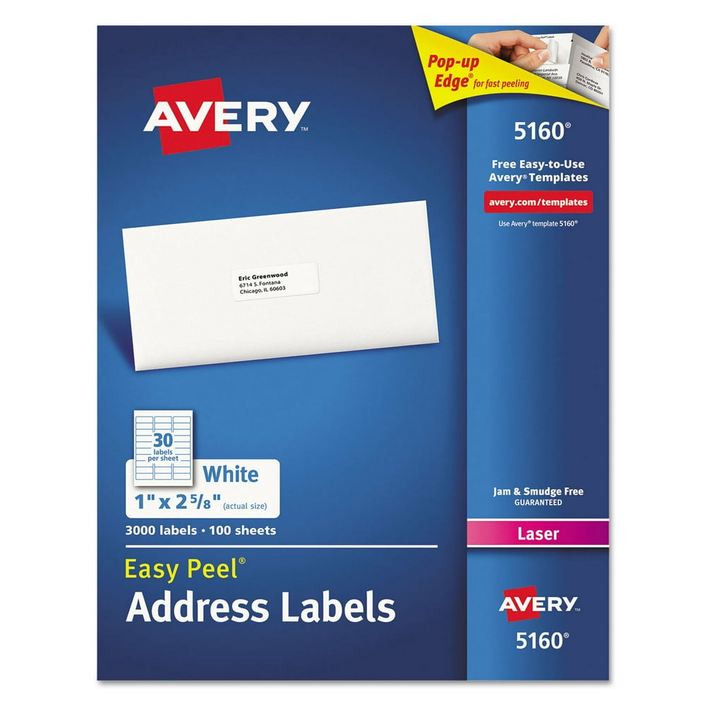 Avery Easy Peel Mailing Address Labels Laser 1 x 2 5/8 White 3000/Box 5160 - Walmart.com ...