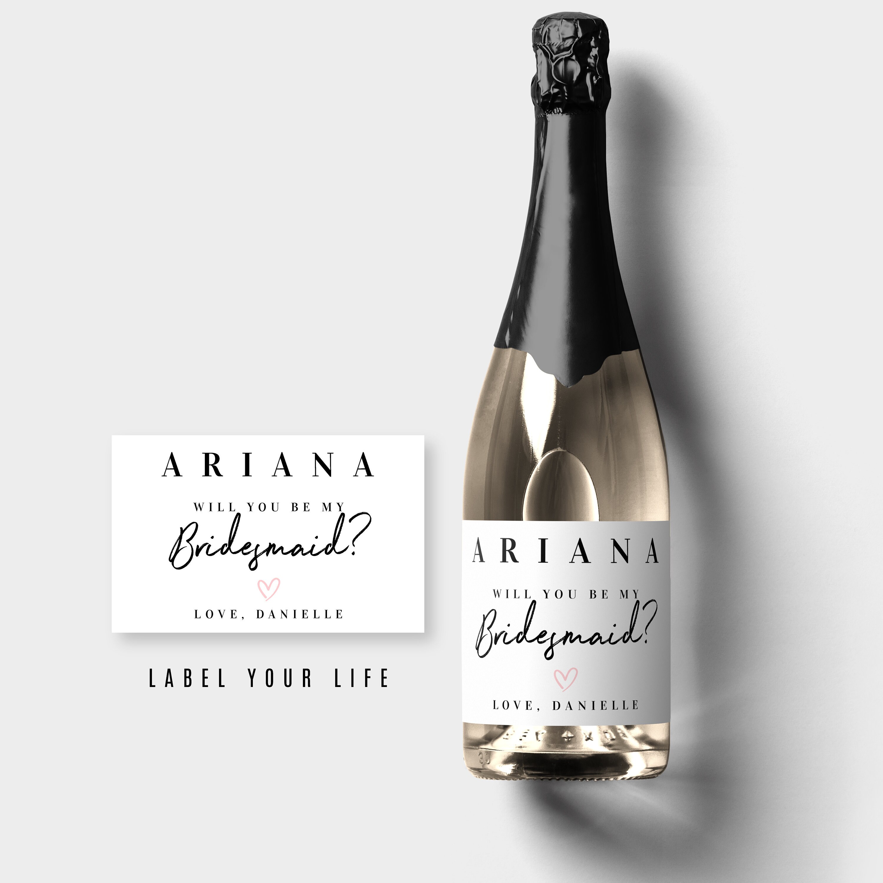Amazon.com: Will You Be My Bridesmaid Mini Champagne Labels, Ask ... 38 1 offer from $11.99 Set of 12 Blush Pink Floral Bridesmaid Proposal Mini Champagne Bottle Labels, WATERPROOF Polyester Mini Wine Bottle Labels, Proposal Idea for Bridesmaids, Maid of Honor & Matron of Honor 102 1 offer from $12.95 Pop to Say Yes Bridesmaid Bubbly Mini Champagne Labels - Set of 12 (Greenery) 70 1 offer from $10.95