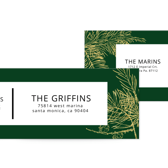 Holiday & Christmas Address Label Templates - Avery Choose this sweet mistletoe Christmas address or return address label template to add a special touch to holiday shipping & mailing. 1" x 2-5/8" Address Label 2" x 4" Address Label 2" Round Label 2" x 6" Rectangle Label Golden Pine Templates Use these lovely golden pine branches to add an elegant touch to all your holiday & Christmas mailings. The Best Custom return Address Labels on Sheets The Best Custom return Address Labels on Sheets for $3.95 shipping on any order show details Holiday Return Address Labels Page: 1 2 3 4 5 Items Per Page Sort By Holiday Address Seals Starting at $17.95 / Set 83 Review (s) Wreath Address Labels Starting at $11.95 / Set 18 Review (s) He Loves Her Address Labels Starting at $11.95 / Set 1 Review (s) Carlton Cards | Zazzle Winter Chickadee Birds Dusty Blue Wreath Christmas Holiday Card. $4.17. 25% Off with code MORESEPTDEAL. ends today. Personalized Happy Birthday Cupcake Card. $3.97. 25% Off with code MORESEPTDEAL. ends today. Rustic Christmas Photo Cards Green Typography. Address Labels | Current Labels ©2022 CurrentLabels.com - All Rights Reserved - Contact Us: P.O.Box 90, Sugar City, ID 83448- webcs@currentlabels.com