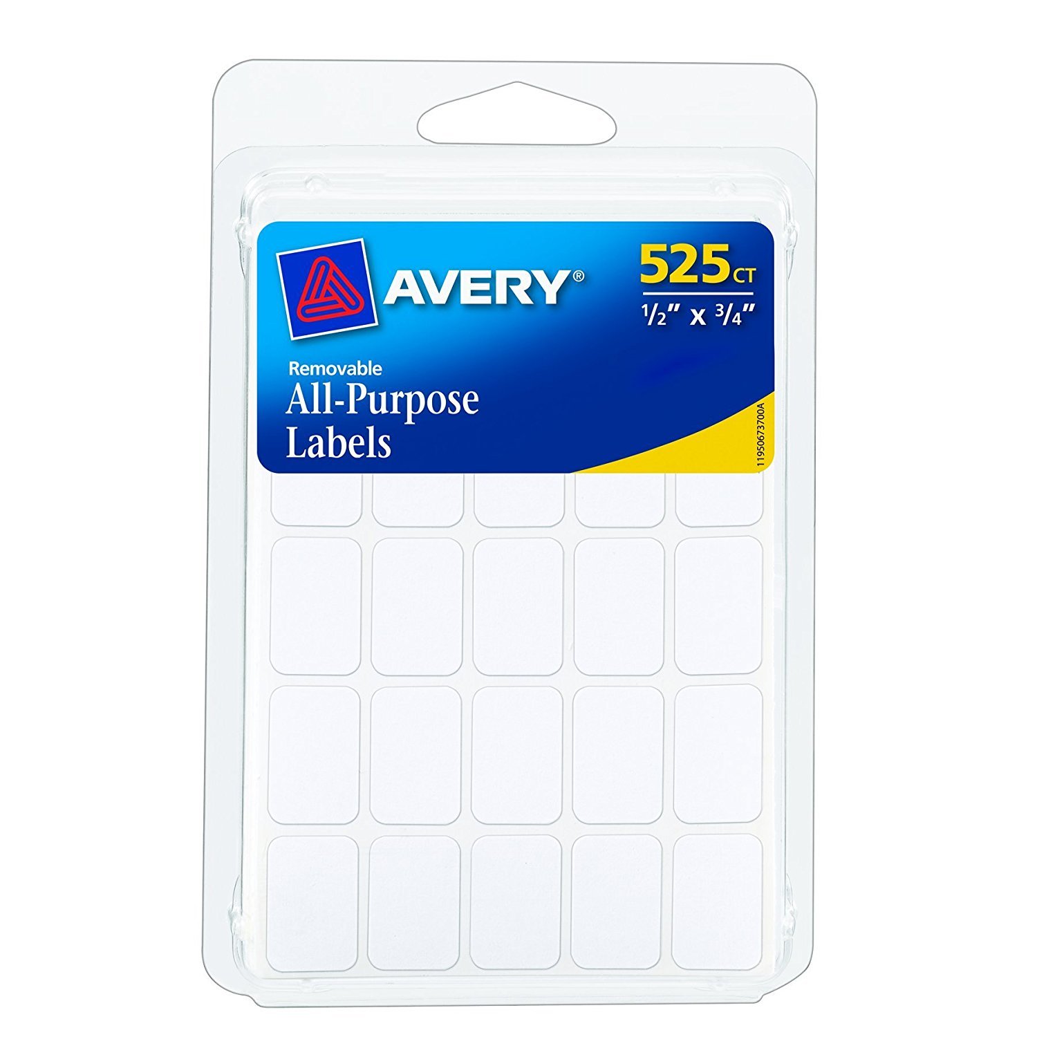 AVERY All PURPOSE LABELS 1/2" X 3/4" Removable adhesive apply remove White 525ct craft hobby iD tags price tags for sales 6Z2F E
